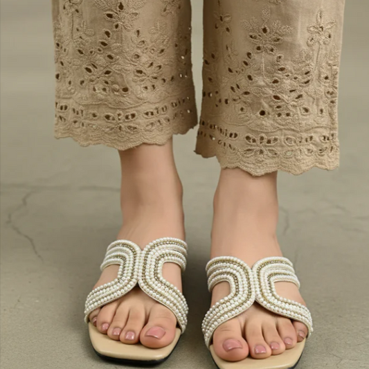Luxury Pearl & Rhinestone Flat Designer Slipper
