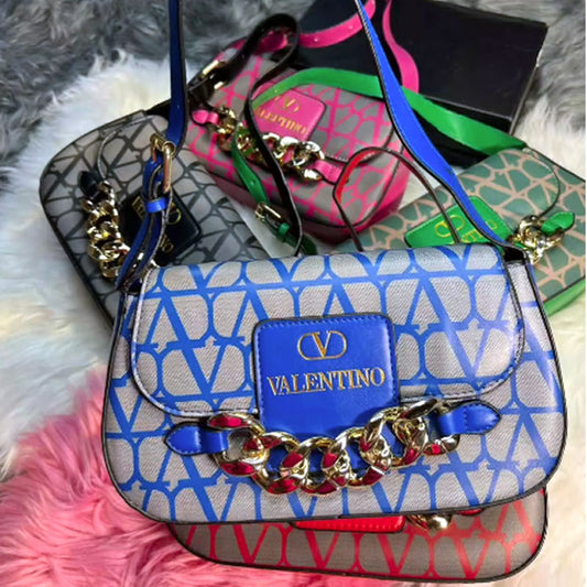 Medium V Logo Chain Leather Shoulder Bag- V-2017