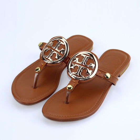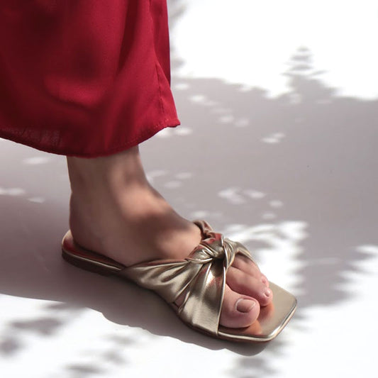 Metallic Shiny Leather Strap Flat Sandal for Women