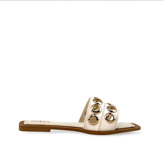 Metal Appliques Inspired Flat Leather Sandals #10403