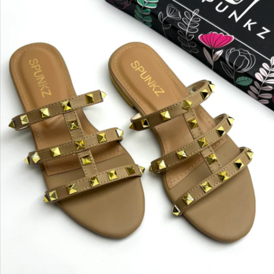 Edgy Studded Cage Flat Slippers Sky Blue & NUDE