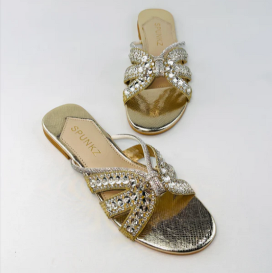 Elegant Bow Stones Metallic Sandal