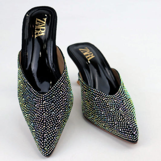 Diamante Mules Women Court Shoes Heels Z-2744