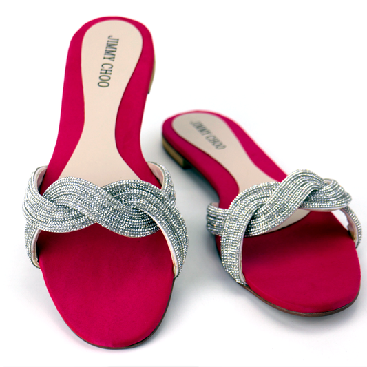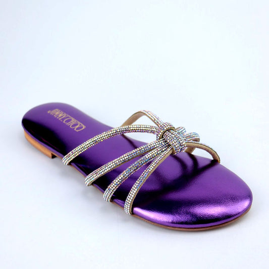 JC Sleek Stylish Rhinestone Knot Strap Flat Slipper JC-10393