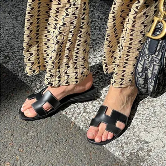 H SHAPE Wedge Heel Sandal Leather Slipper For Women - #1017