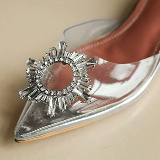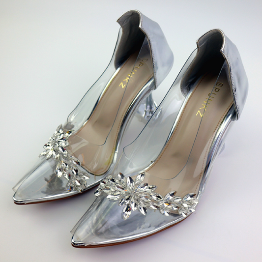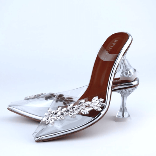 Discover the allure of see-through footwear that adds a touch of sophistication to any outfit. Find stunning crystal Cinderella transparent heels online in Pakistan.