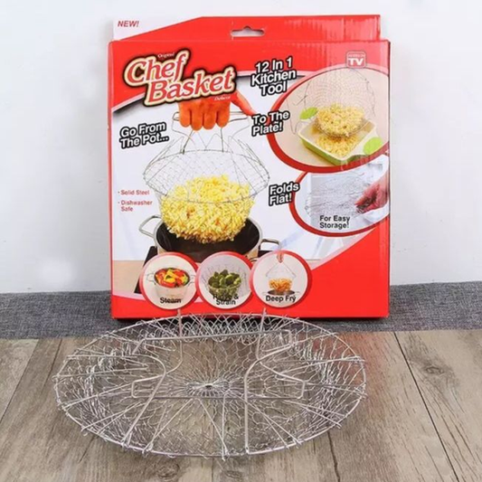 Stainless Steel Chef Basket Foldable Strainer for Vegetable Frying Boiling Steam