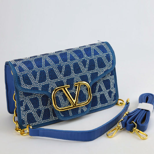 V Gold Logo Rhinestone Decor Evening Shoulder Bag -2003