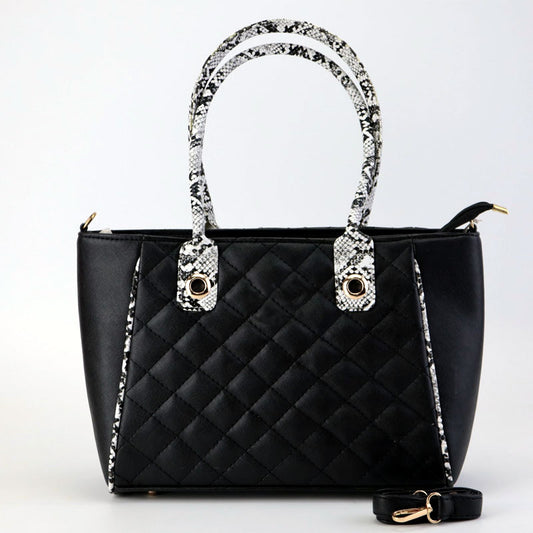 Ch Quilted Snake Print Handle Strap Shoulder Bag