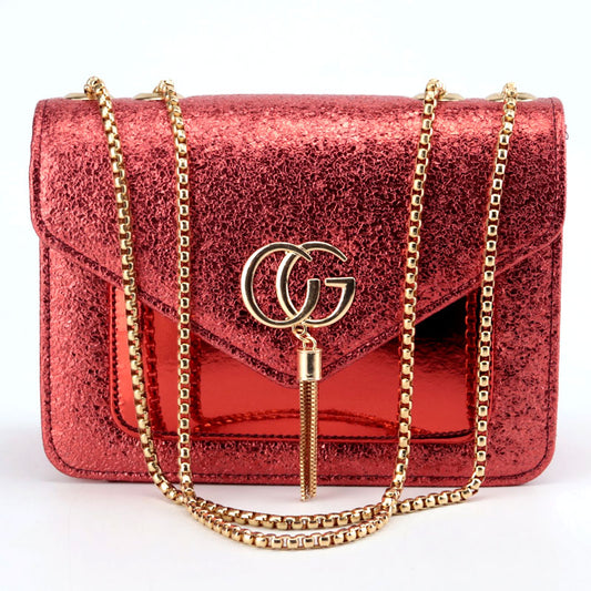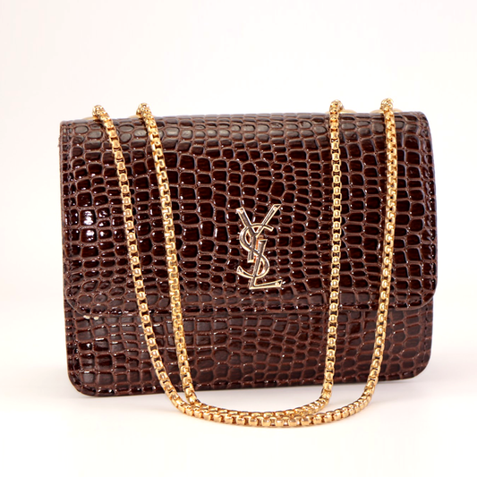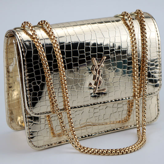 Croc Pattern Metallic Shine Chain Crossbody Bag