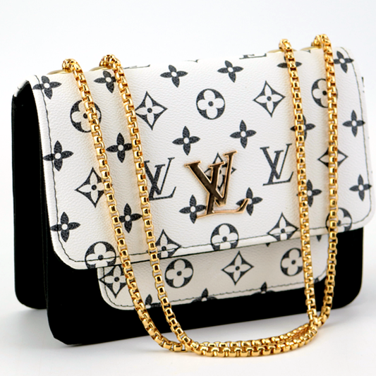 Sling Bag Leather Flap Open Chain Crossbody Purse L-v 334