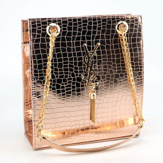 Tote Bag Gold Tassel Decor Chain Link Sleek Handbag