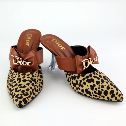 Heels Square Toe Pointed Head Leopard Print Chain Decor Sandals #10372