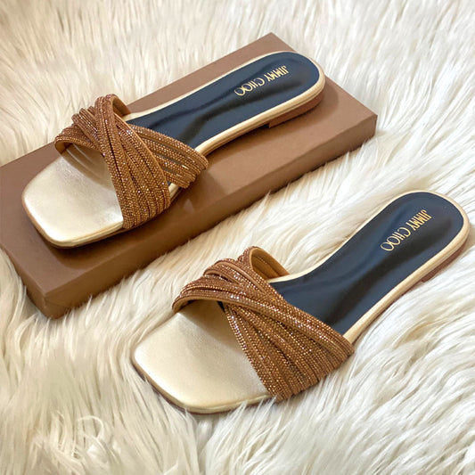 JC Rhinestone Flats Criss Cross Straps Party Wear Shimmering Slippers #10399