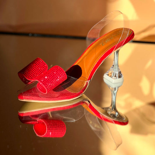 Rhinestone Bow Glam Up Clear Heels