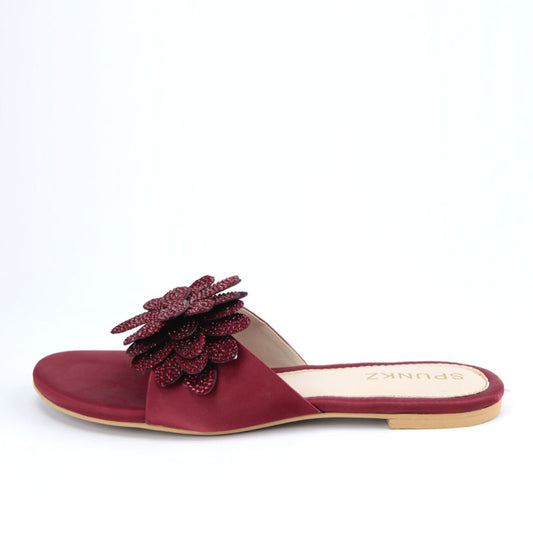 Flower Petal Rhinestone Decor Formal Flat Slippers