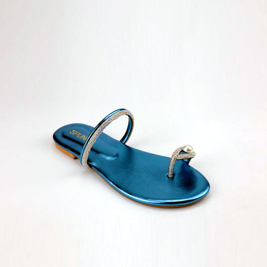 Pearl Ring Toe Flats Padded Metallic Sole Slippers