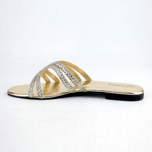 JC Rhinestone Flats Criss Cross Straps Party Wear Shimmering Slippers #10399