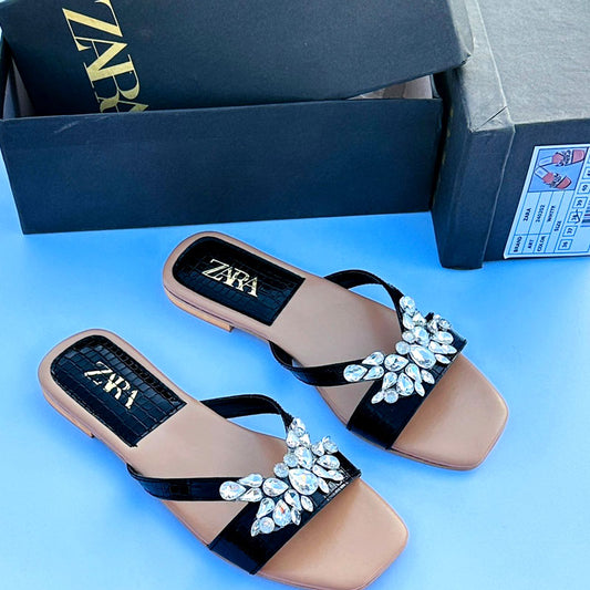 Rhinestones Flat Sandals โ Womenโs Flat-Bottomed Strap Stone Flats-1007