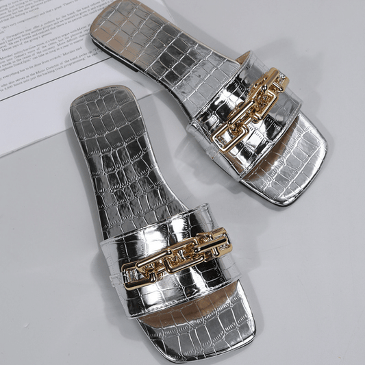 Women Flip Flops Chain Flat Heel Slippers-#1011