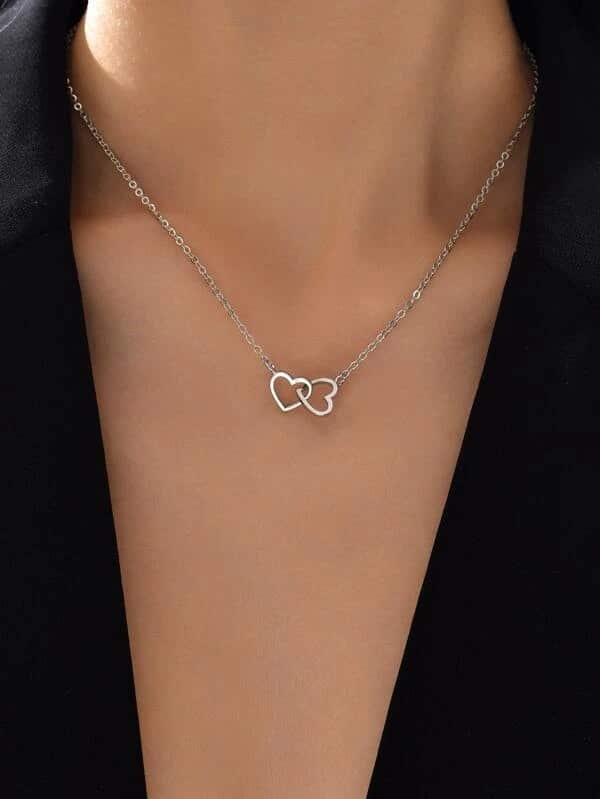 Beautiful Charm Heart Gold Silver Pearl Diamond Pendant Necklace