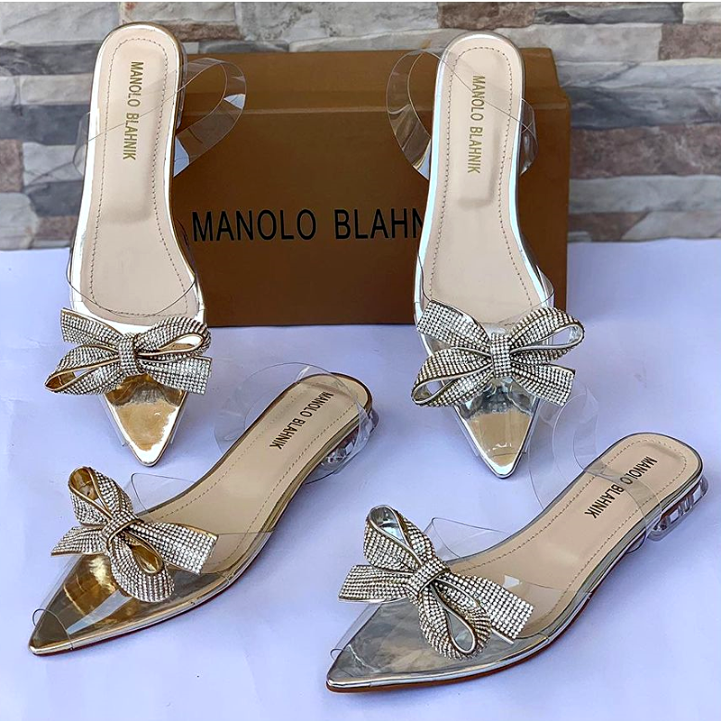 Clear Slingback Rhinestones Bow Transparent Flats- #10379