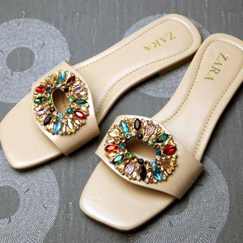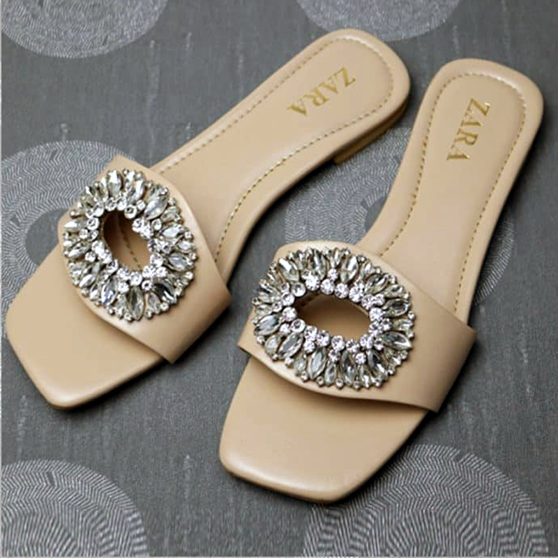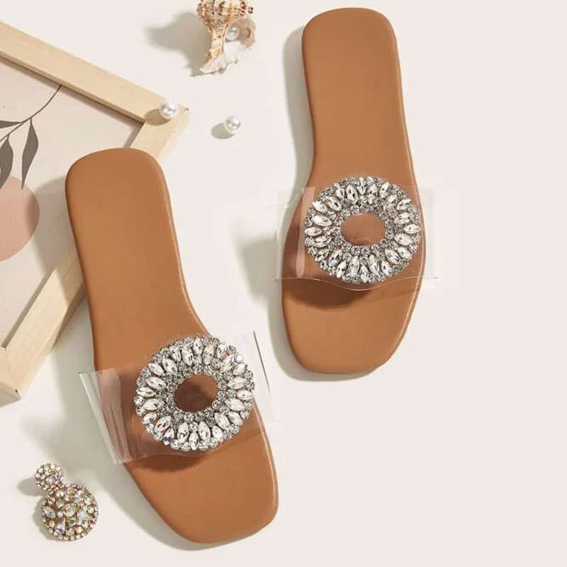 Embellished Flat Vinyl Sandals For Woman-#1021
