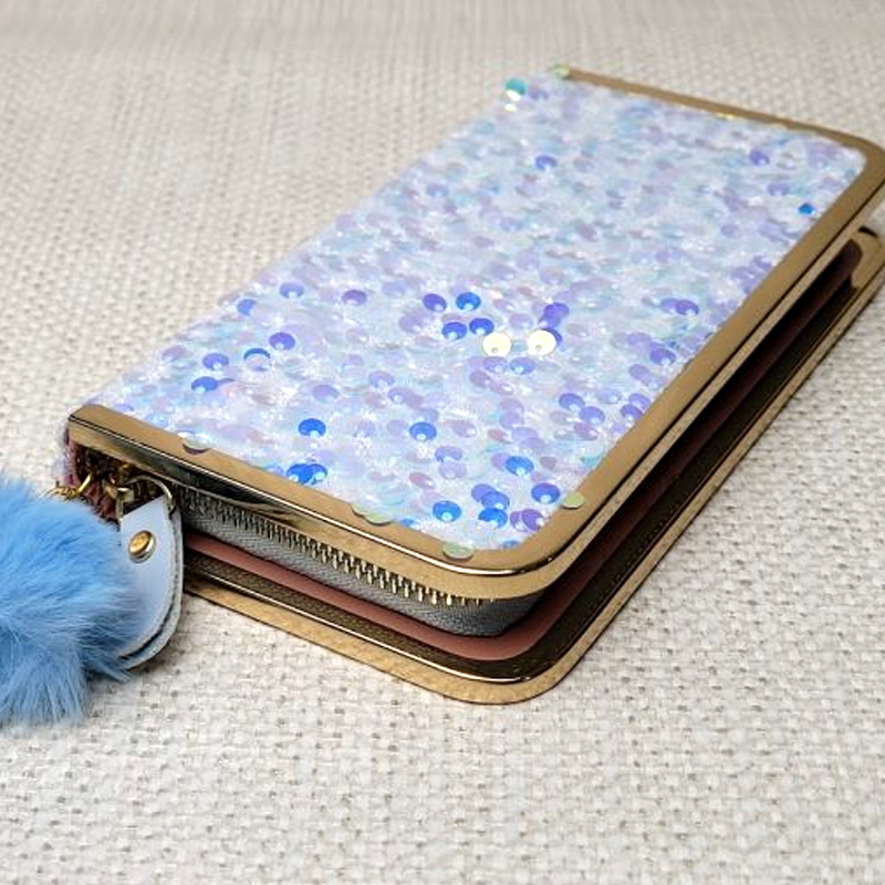 Flip Open Two Toned Zipper Clutches β Glitter Reversible Sequin Zip-Around Hand Wallet for Kids, Teens And Women