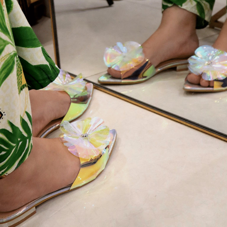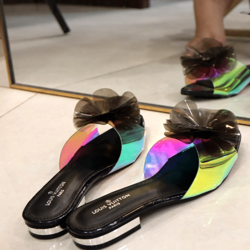 Low Heel Transparent Crystal Sandals, Elegant Floral Style Shoes, Casual Shoes Slippers #A70-1