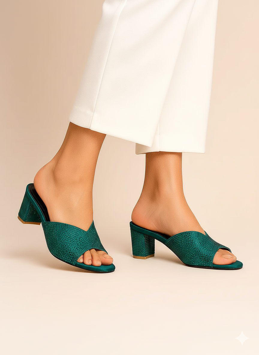 Sparkly Rhinestone Thick Heels Fancy Sandal Party wear Z-10376