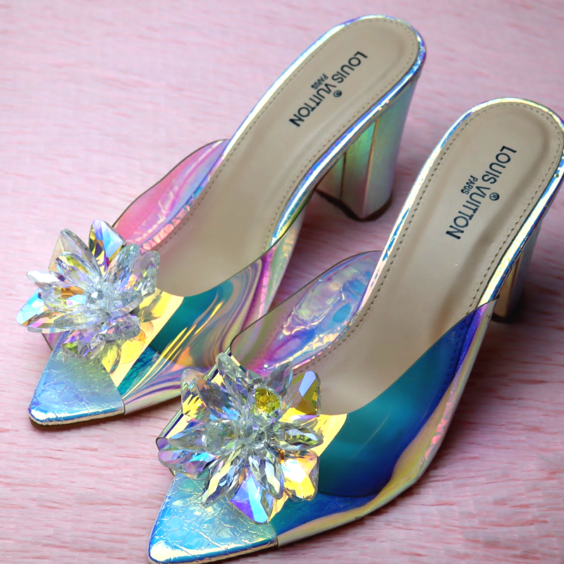 Transparent Hologram Diamond Buckle High Heels for Women #10390